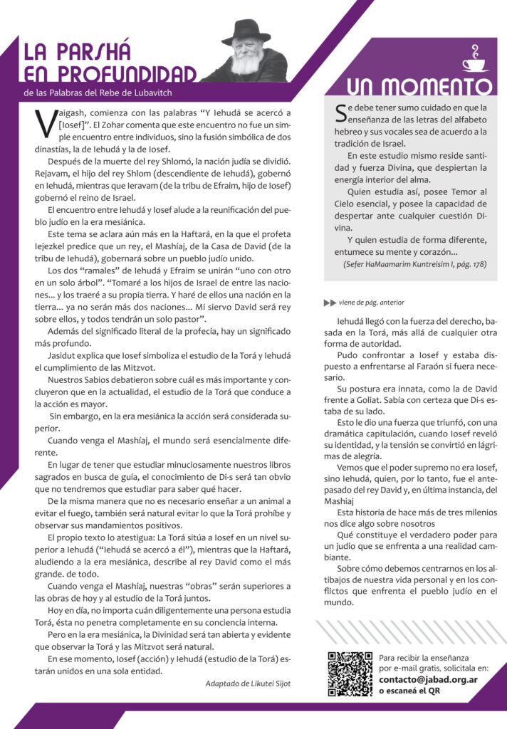 Enseñanza semanal Parshat Vaigash
